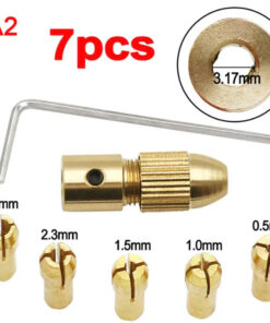 Đặt mua Set 5 đầu kẹp Đồng mũi khoan, mũi mài kèm khớp nối máy cuốn keo | Trục 2.35mm | Trục 3.17m